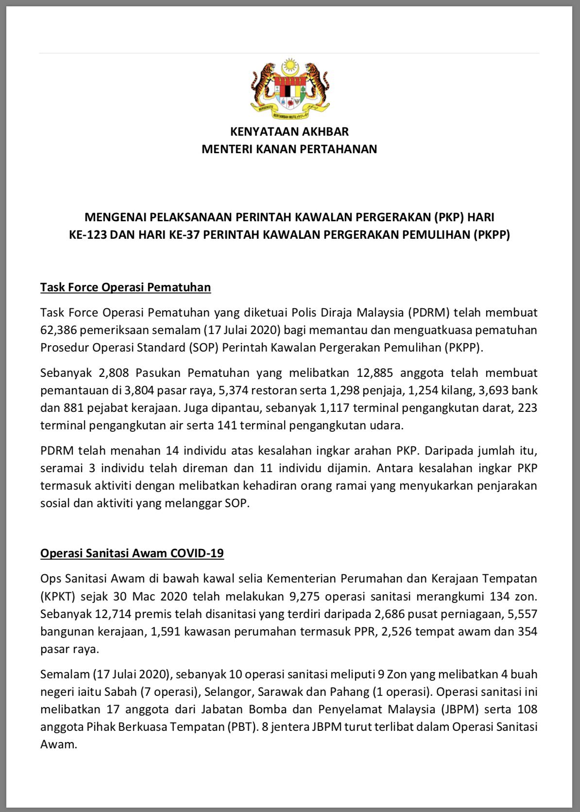 Mindef Malaysia On Twitter Kenyataan Akhbar Menteri Kanan Pertahanan Perintah Kawalan Pergerakan Pemulihan Pkpp 19 Julai 2020