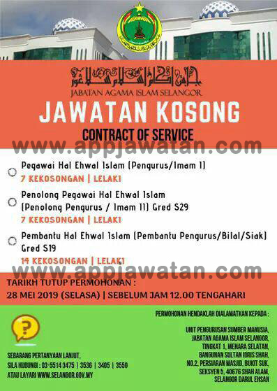 Jawatan Kosong Jabatan Agama Islam Selangor Jais Tarikh Tutup 28 Mei 2019