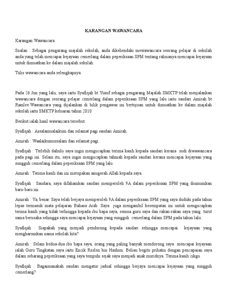 Contoh Karangan Temuramah Pelajar Cemerlang Catatan Hari Keluarga