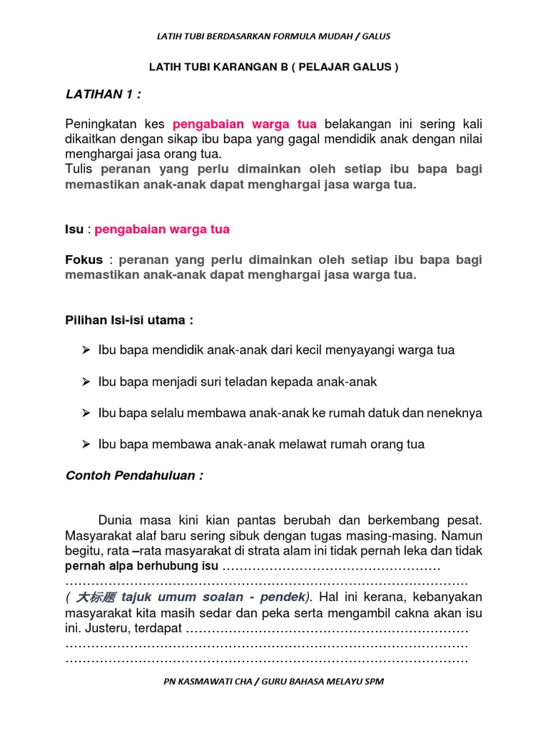 Bahasa Melayu Spm Cara Cara Menghargai Jasa Warga Tua Karangan Galus