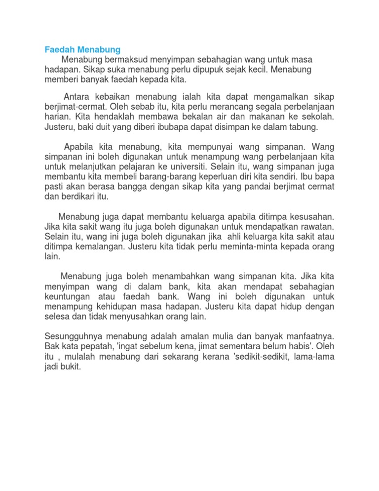 Karangan Faedah Menabung Dan Kebaikan Bersukan