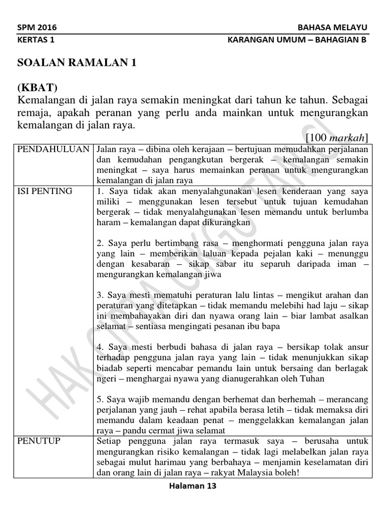 Karangan Panas Spm Faktor Peningkatan Kadar Kemalangan Jalan Raya