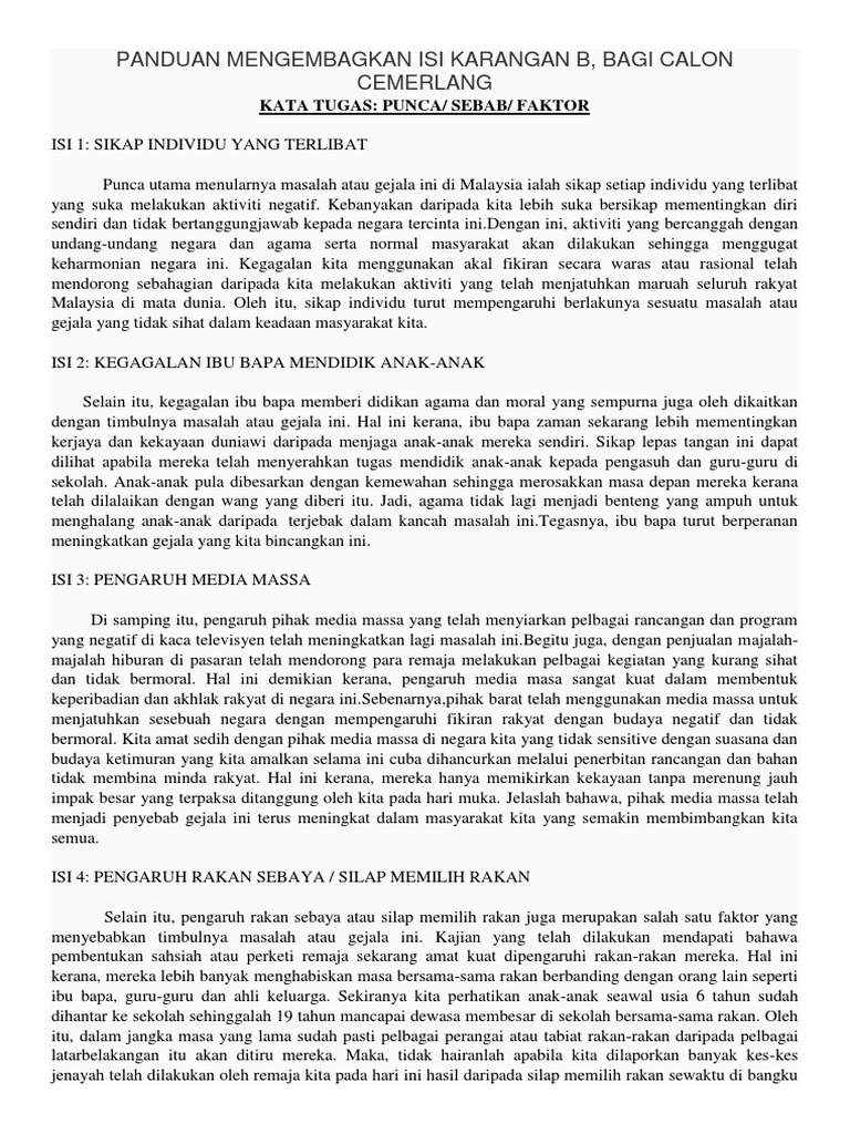 Panduan Mengembagkan Isi Karangan B Bagi Calon Cemerlang Kata Tugas Punca Sebab Faktor