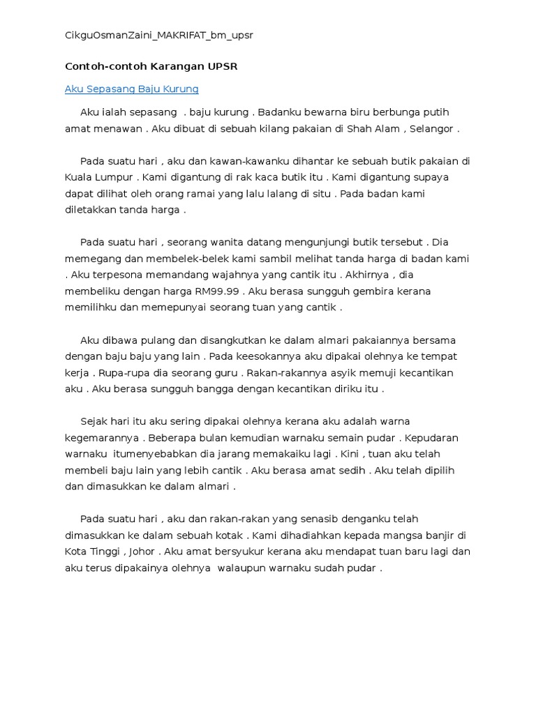 Doc Contoh Karangan Rosni Yus Academia Edu