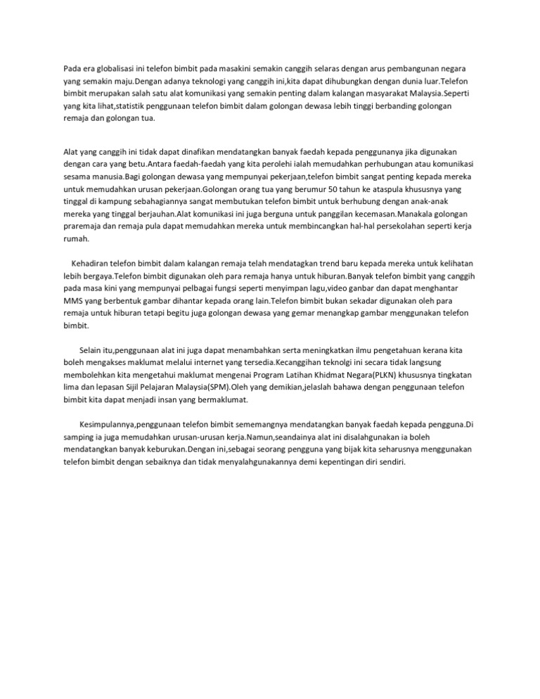 Pada Era Globalisasi Ini Telefon Bimbit Pada Masakini Semakin Canggih Selaras Dengan Arus Pembangunan Negara Yang Semakin Maju
