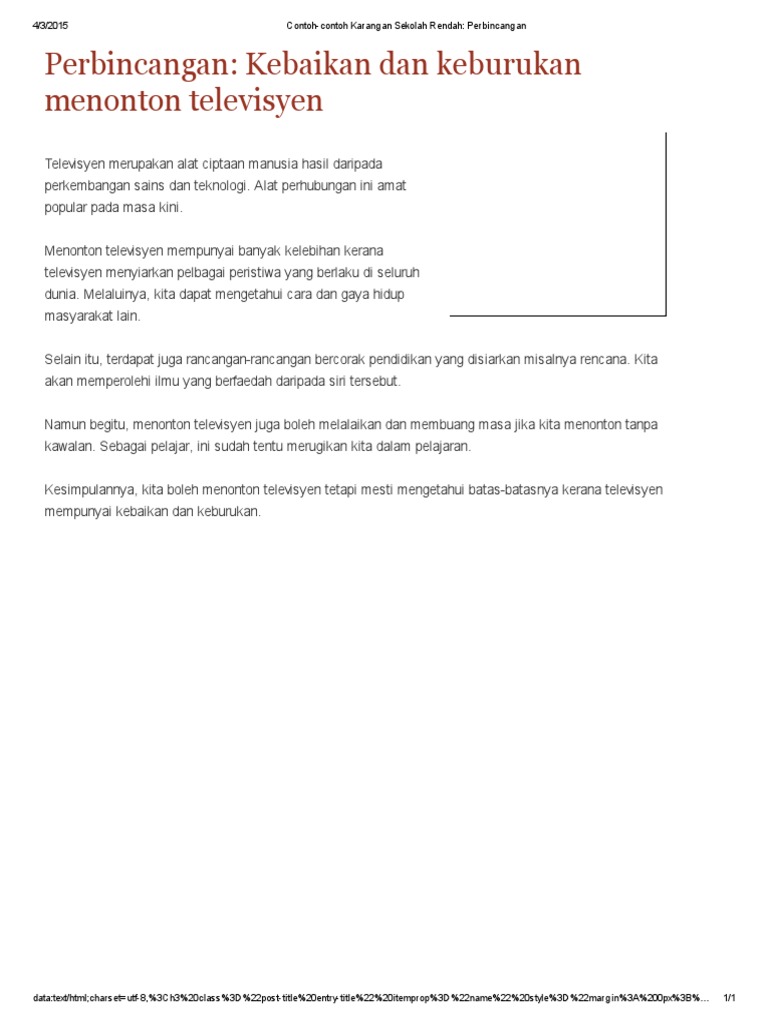 Contoh Contoh Karangan Sekolah Rendah Perbincangan Kebaikan Dan Keburukan Menonton Televisyen