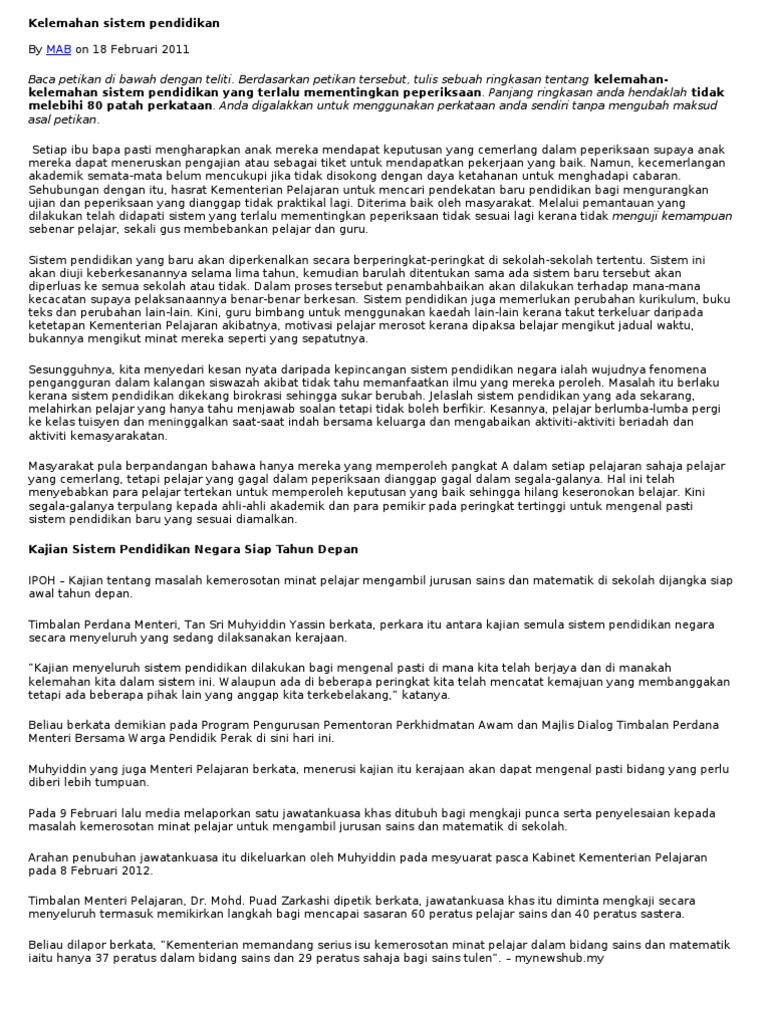 Kelemahan Sistem Pendidikan Di Malaysia