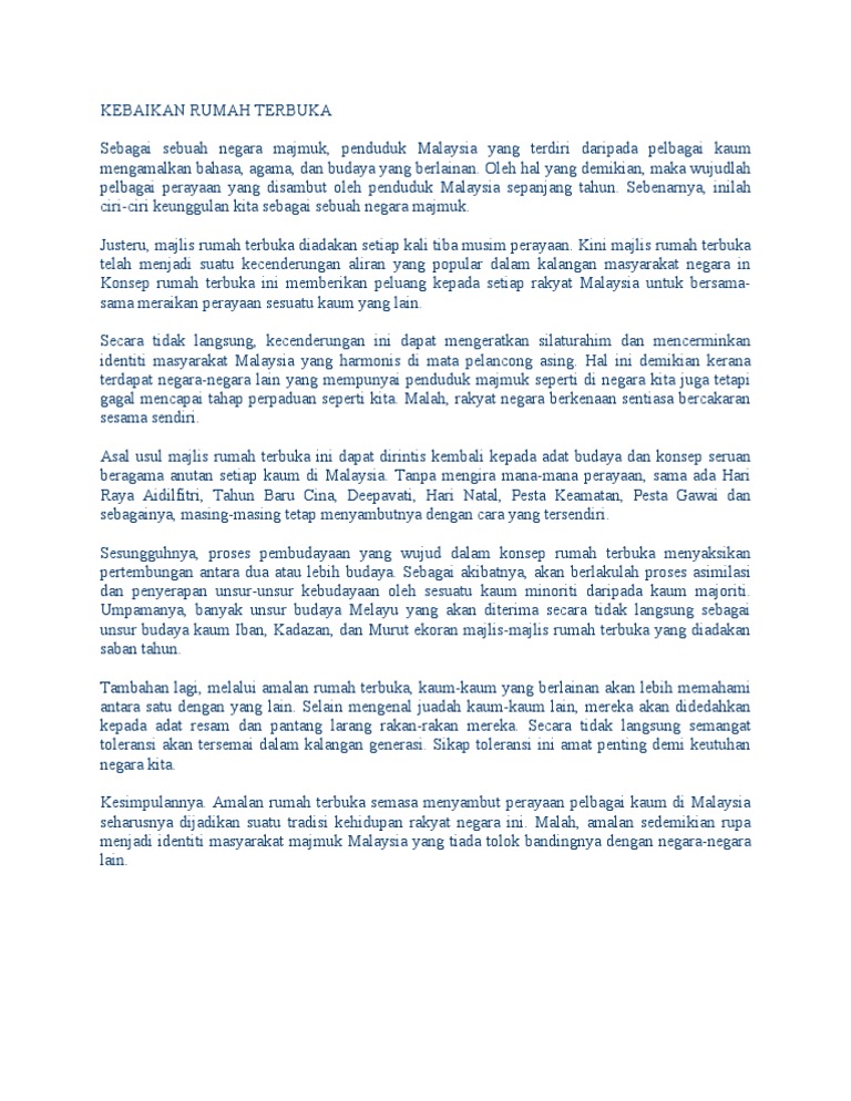 Doc Karangan Cemerlang Spm Kebaikan Amalan Rumah Terbuka Najat Ruhi Academia Edu