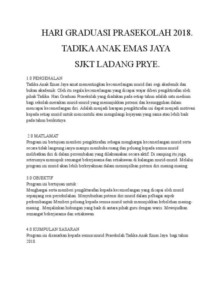 Kertas Kerja Hari Graduasi Prasekolah 2018 Doc