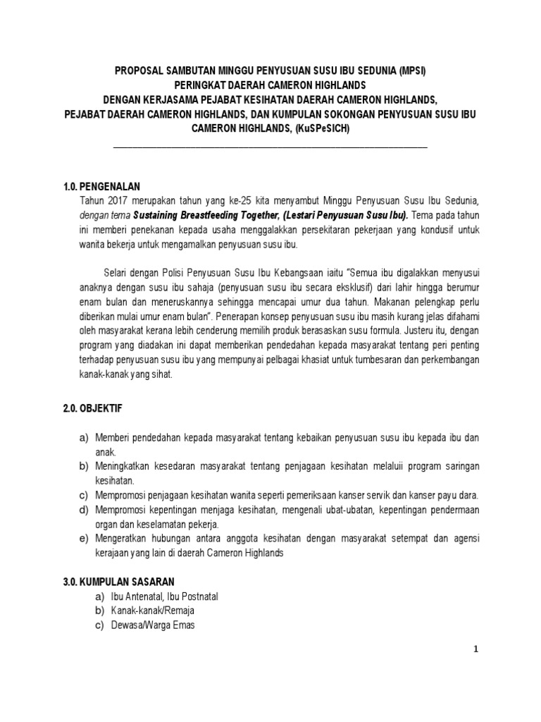 Proposal Sambutan Minggu Penyusuan Susu Ibu Sedunia Mpsi Peringkat Daerah Cameron Highlands 2017 10 Sept