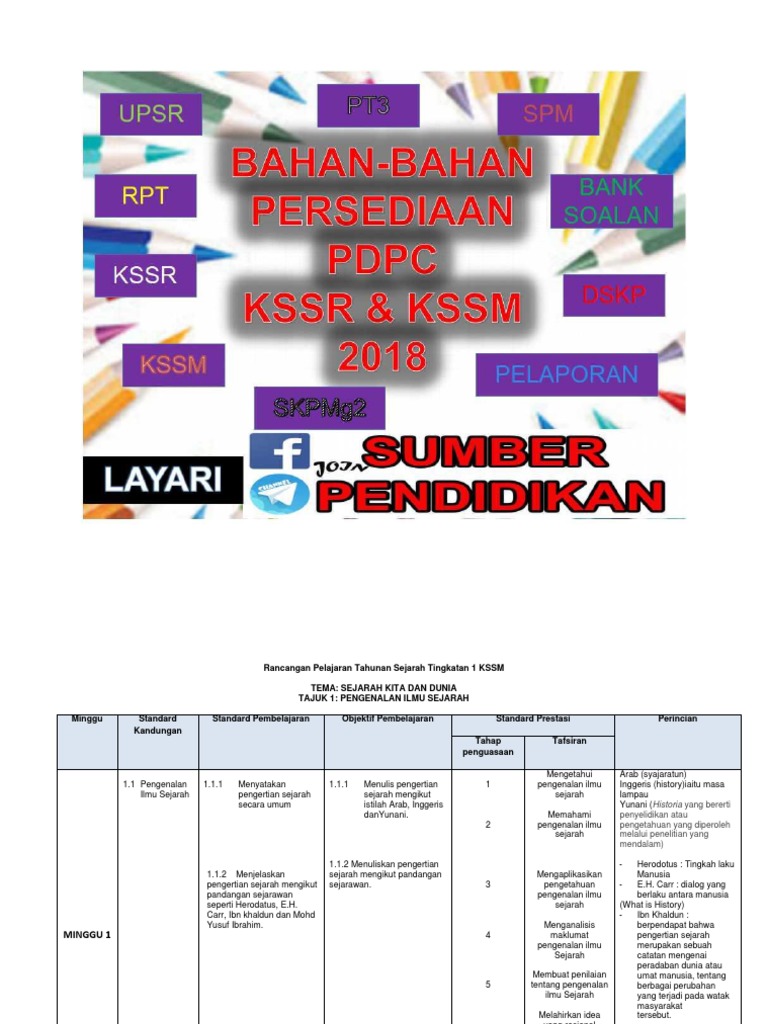 Rpt Kssm Tingkatan 1 Sejarah 2018
