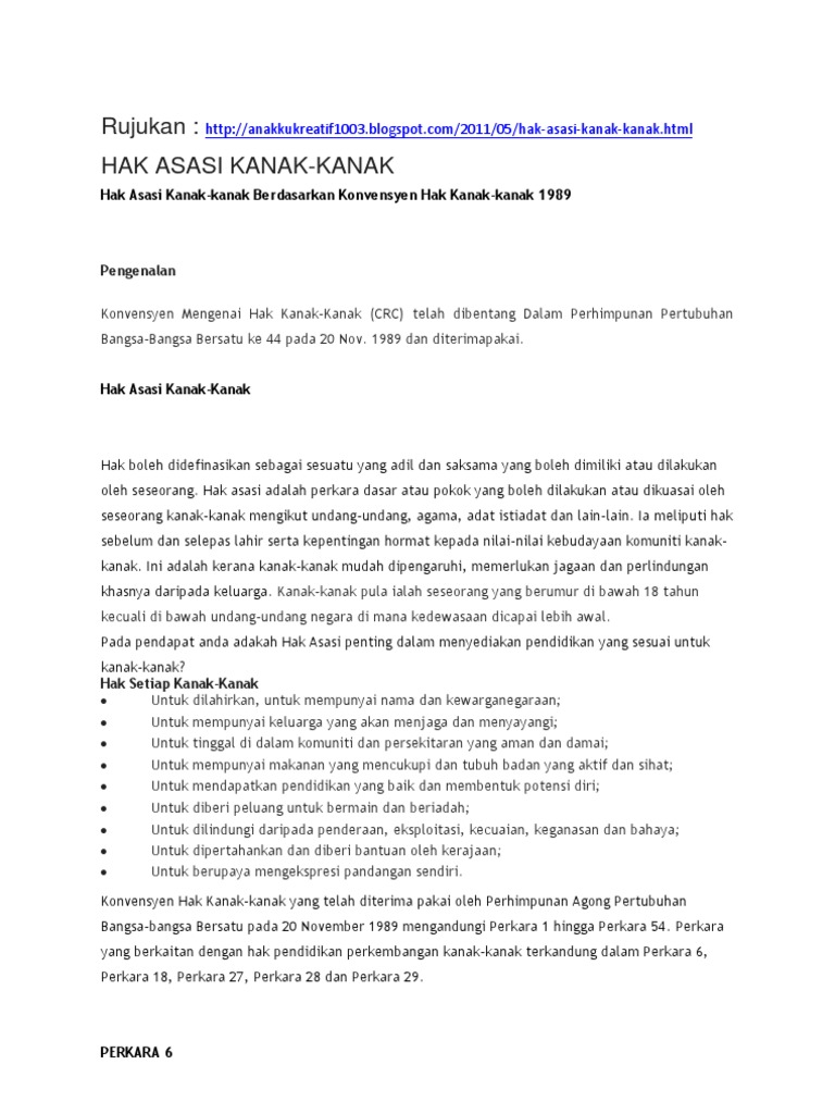 Doc Hak Asasi Kanak Kanak Konvensyen Mengenai Hak Kanak Kanak Hak Asasi Kanak Kanak Konvensyen Mengenai Hak Kanak Kanak Nik Roslina Nik Hasan Academia Edu