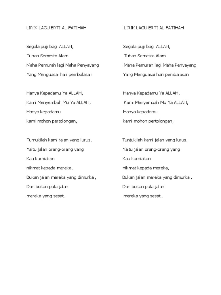 Lirik Lagu Erti Al Fatihah