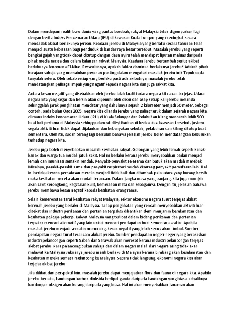 Karangan Jerebu Pt3 Contoh Dan Punca Masalah Di Malaysia