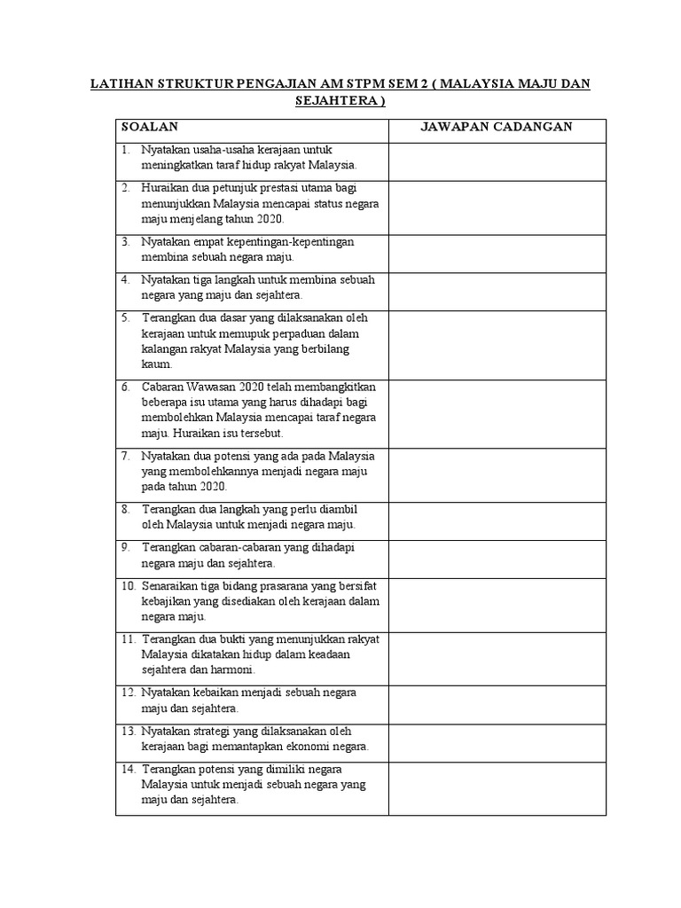 Latihan Struktur Pengajian Am Stpm Sem 2 Malaysia Maju Dan Sejahtera Soalan Jawapan Cadangan