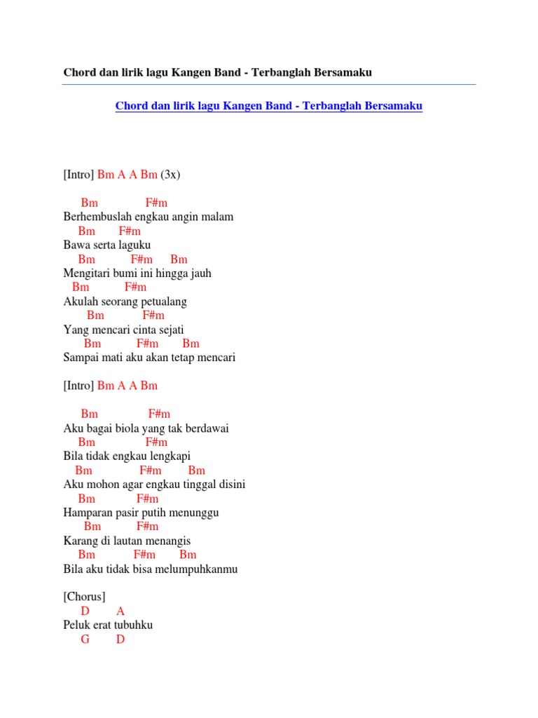 Chord Dan Lirik Lagu Kangen Band Terbanglah Bersamaku