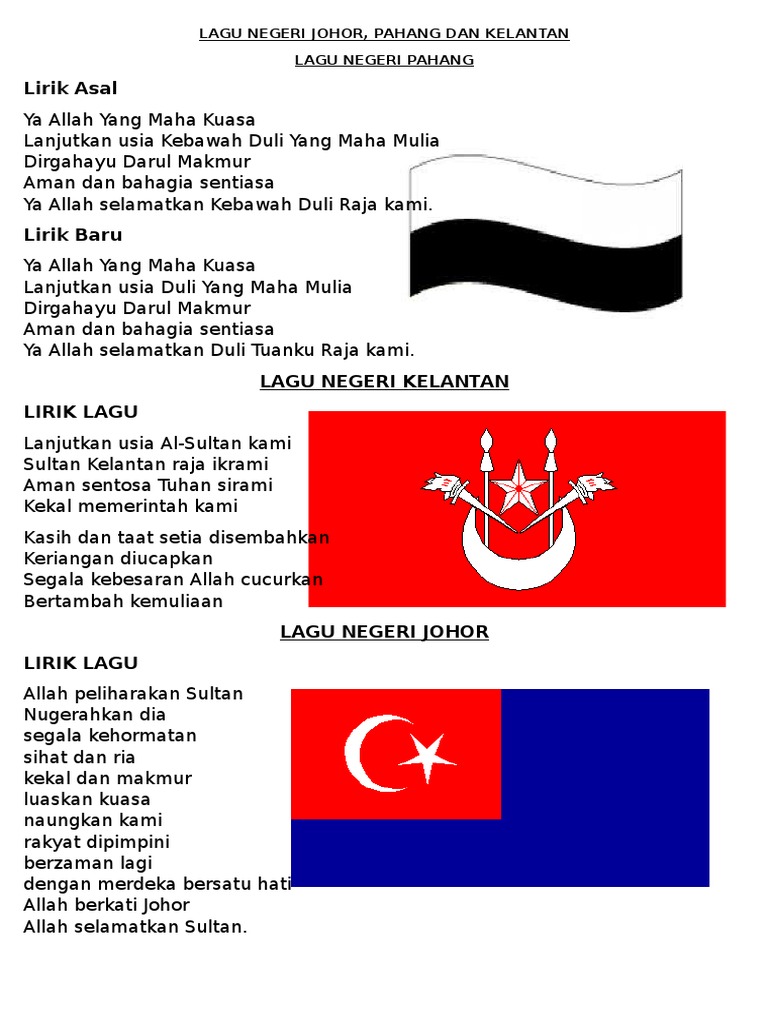 Lagu Negeri Johor Pahang Dan Kelantan