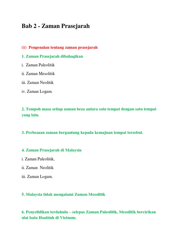 Sejarah Tingkatan 1 Bab 2 Zaman Pra Sejarah