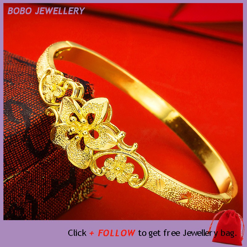 Emas Korea Berongga Bunga Mawar Gelang Tangan Gold Hollow Flower Buckle Bangle Bracelet Shopee Malaysia