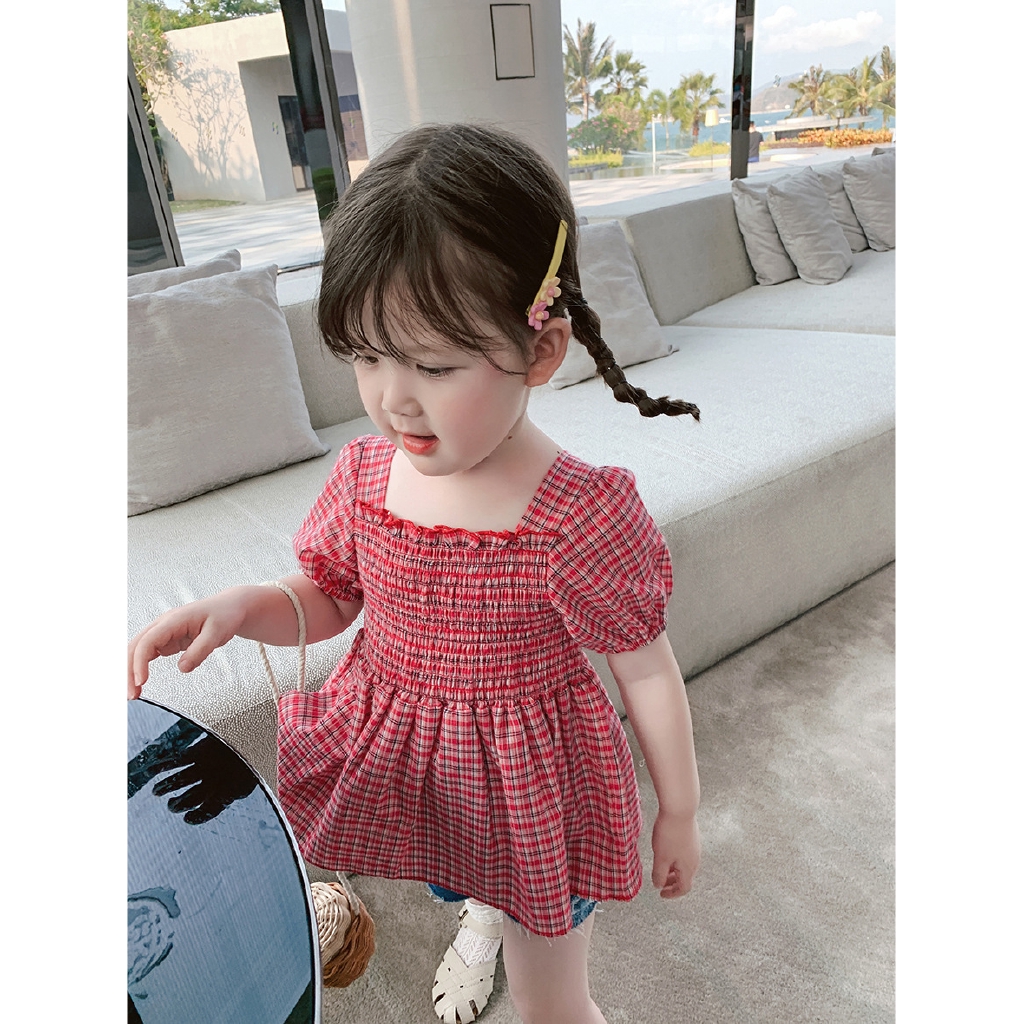 Pakaian Kanak Kanak Pakaian Musim Panas Kanak Kanak Perempuan Baru Kemeja Kotak Kotak Lengan Gelembung Gaya Barat Baju Kanak Kanak Baju Pendek Bayi Shopee Malaysia