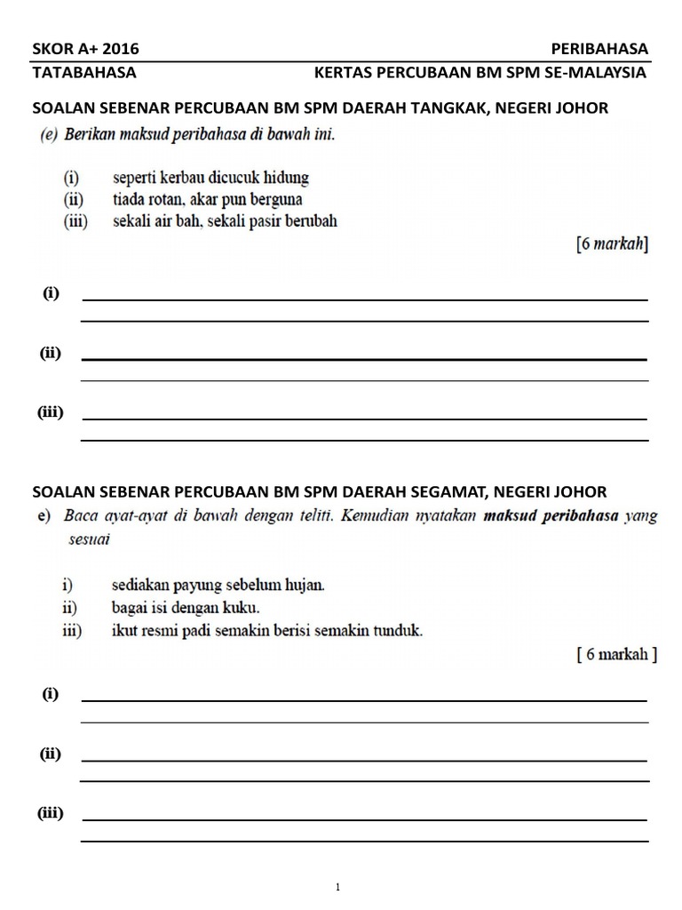 Soalan Peribahasa Percubaan Bm Spm Se Melaysia