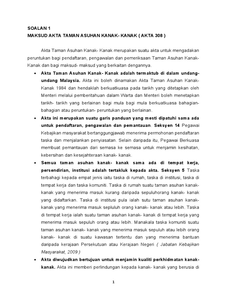 Akta Taman Asuhan Kanak Kanak 1984 Archives Tvet Jpk Sijil Kemahiran Malaysia Vto Noss Urise