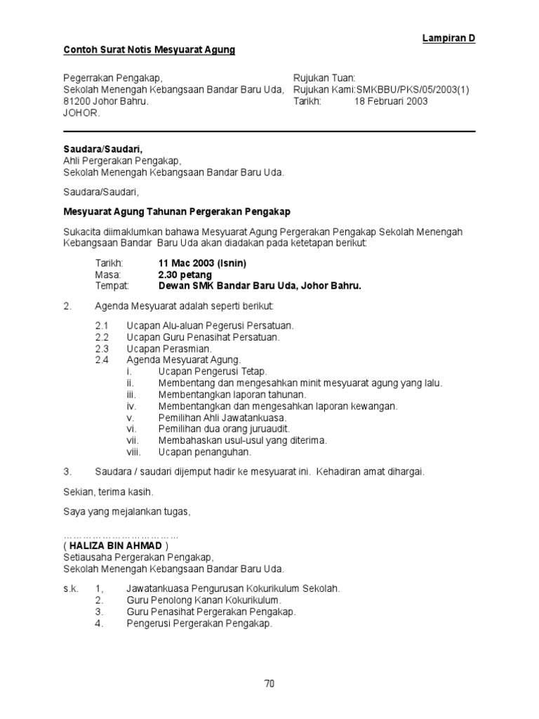 Lampiran D Contoh Surat Notis Mesyuarat Agung