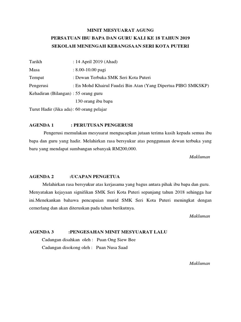 Minit Mesyuarat Jawatankuasa Pibg Bilangan 2 Tahun 2019 Pages 1 11 Text Version Anyflip