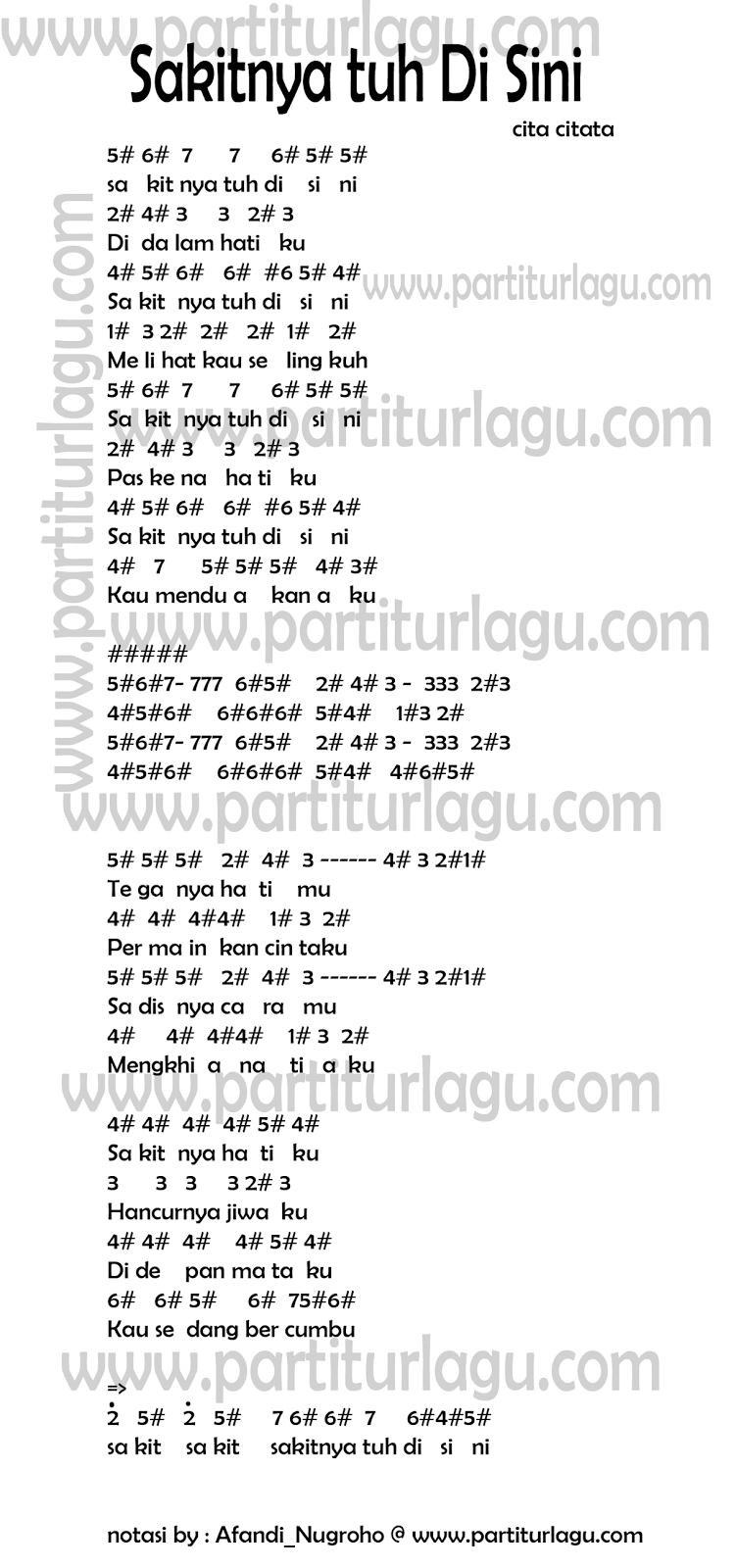 Not Angka Lagu Sakitnya Tuh Disini Cita Citata Partitur Lagu Terbaru