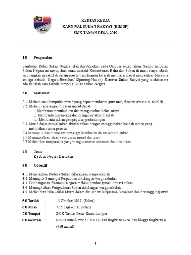 Kertas Kerja Karnival Sukan Kanak Kanak Updated 15 Sep Pages 1 19 Text Version Anyflip