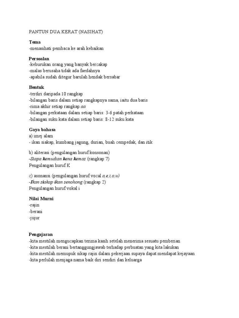 Latihan Pantun Dua Kerat Nasihat T1 Download Doc