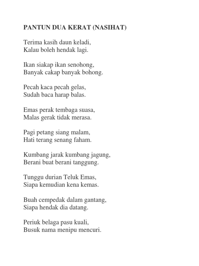 Puisi Tradisional Pantun Dua Kerat Nasihat