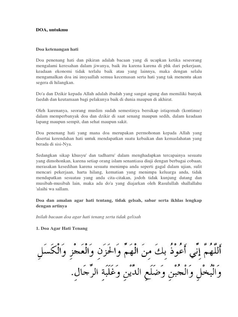 Doa Penenang Hati Dan Zikirnya Bacaan Arab Latin Dan Artinya